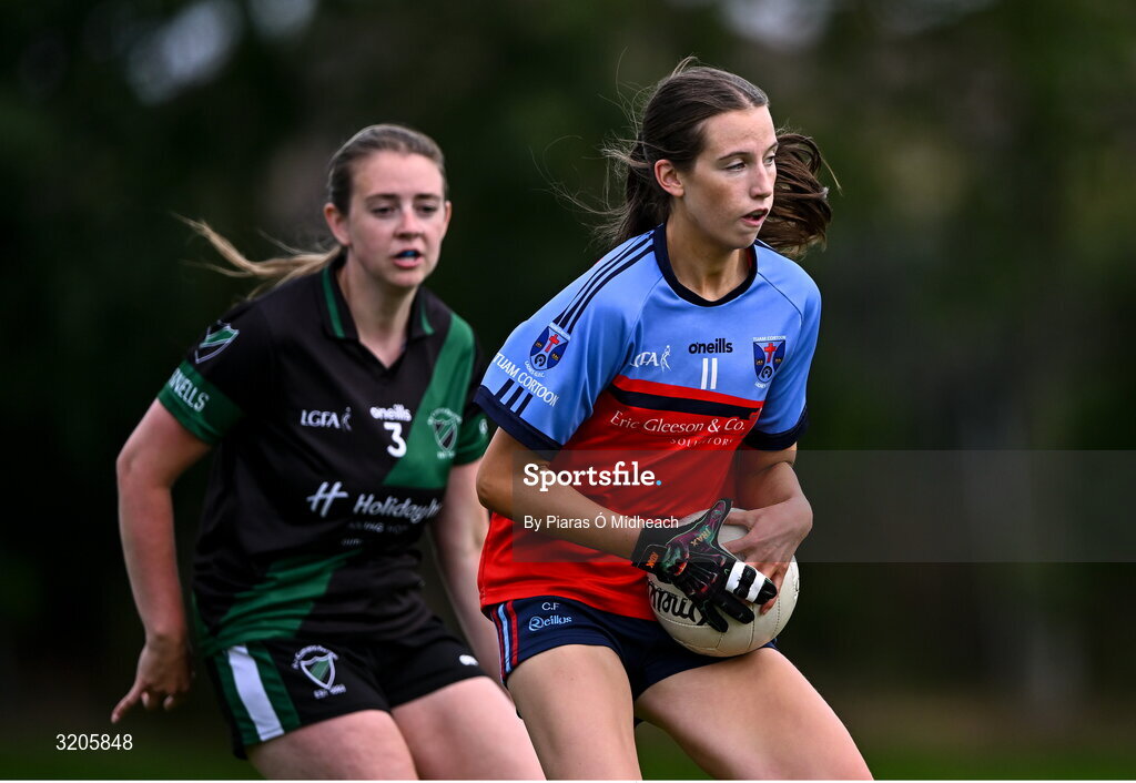 2 August 2025; Action from Tuam Cortoon, Galway and Pobal Parnell, Dublin, in the Intermediate competition at the O’Neills All-Ireland Club 7s competitions at Naomh Mearnóg GAA Club in Portmarnock, Dublin. Photo by Piaras Ó Mídheach/Sportsfile