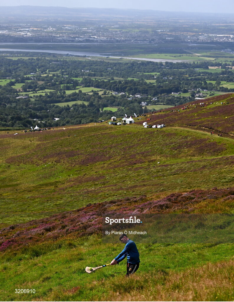 4 August 2025; Pearse Smyth of Down competing in the Senior Hurling competition during the M. Donnelly GAA Poc Fada All-Ireland Finals at Annaverna Mountain in the Cooley Peninsula, Ravensdale, Louth. Photo by Piaras Ó Mídheach/Sportsfile
