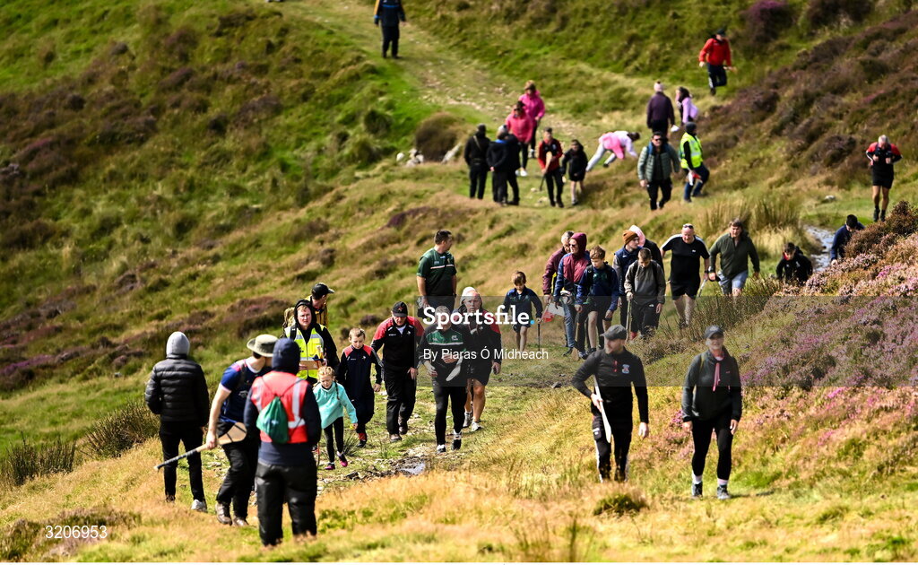 4 August 2025; Competiors, officials and spectators during the M. Donnelly GAA Poc Fada All-Ireland Finals at Annaverna Mountain in the Cooley Peninsula, Ravensdale, Louth. Photo by Piaras Ó Mídheach/Sportsfile