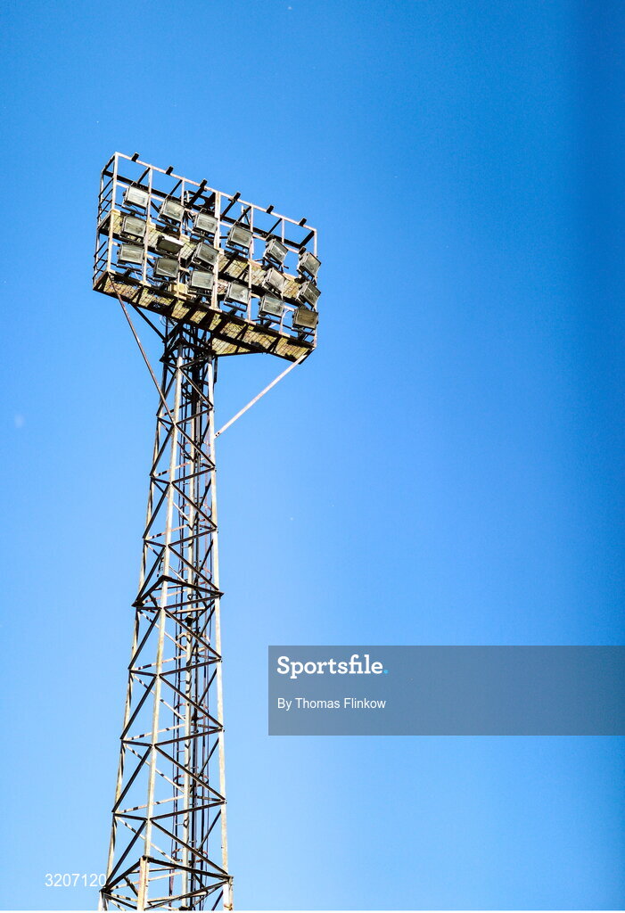 4 August 2025; A general view of a floodlight before the SSE Airtricity Men's First Division match between Dundalk and Longford Town at Oriel Park in Dundalk, Louth. Photo by Thomas Flinkow/Sportsfile