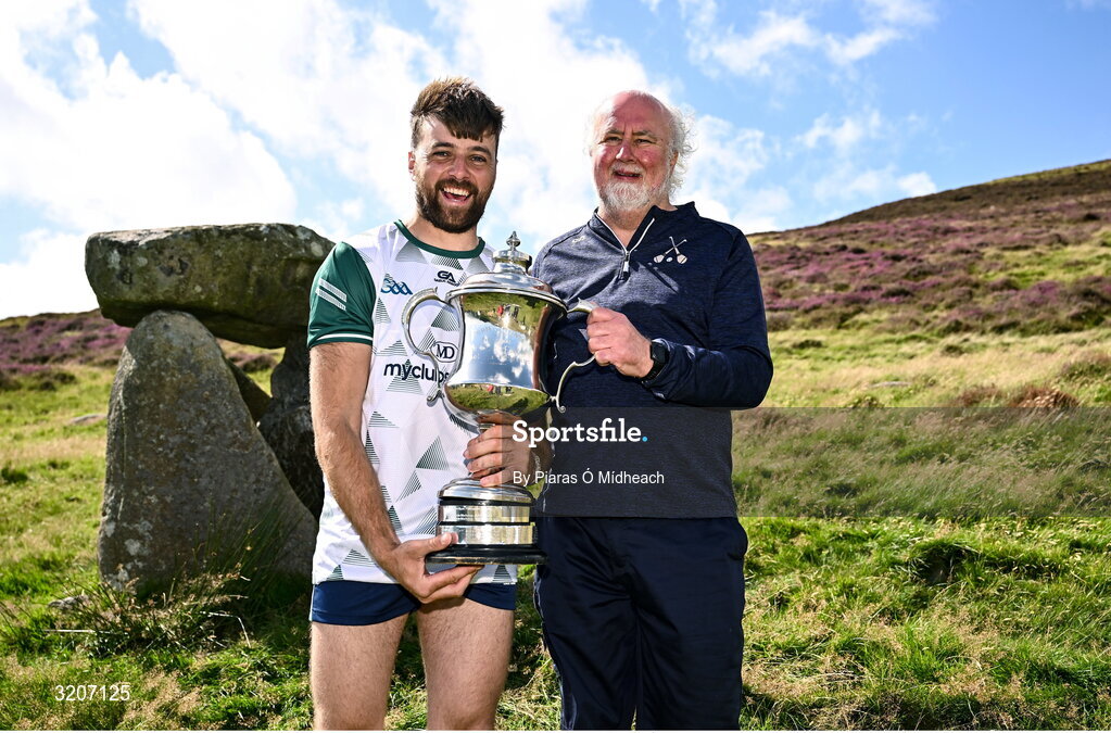 4 August 2025; Senior Hurling winner Colin Ryan of Limerick with the trophy and event sponsor Martin Donnelly after the M. Donnelly GAA Poc Fada All-Ireland Finals at Annaverna Mountain in the Cooley Peninsula, Ravensdale, Louth. Photo by Piaras Ó Mídheach/Sportsfile