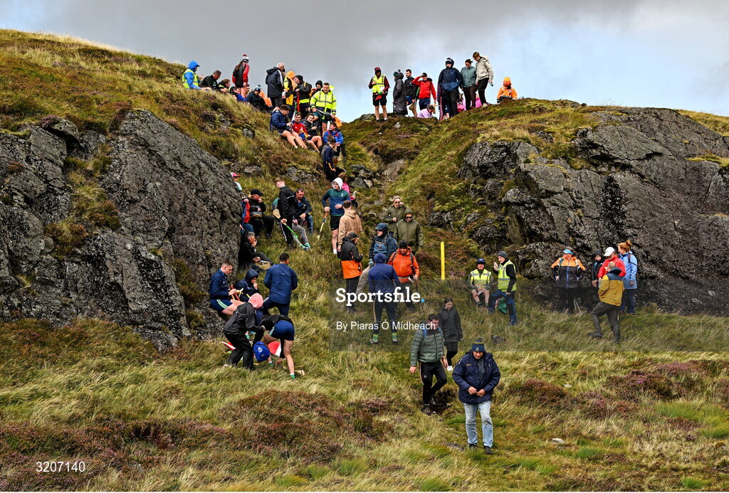 4 August 2025; Competitors and spectators stop for food during the Senior Hurling competition during the M. Donnelly GAA Poc Fada All-Ireland Finals at Annaverna Mountain in the Cooley Peninsula, Ravensdale, Louth. Photo by Piaras Ó Mídheach/Sportsfile
