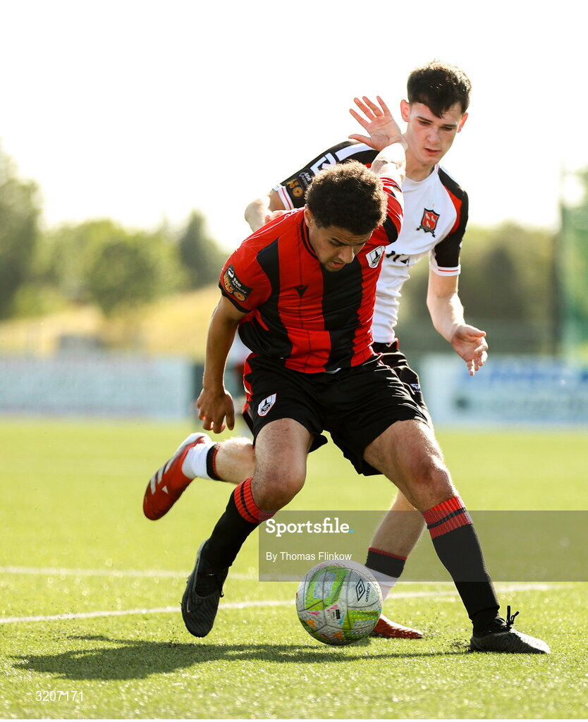 4 August 2025; Mohammed Boudiaf of Longford Town in action against Shane Tracey of Dundalk during the SSE Airtricity Men's First Division match between Dundalk and Longford Town at Oriel Park in Dundalk, Louth. Photo by Thomas Flinkow/Sportsfile