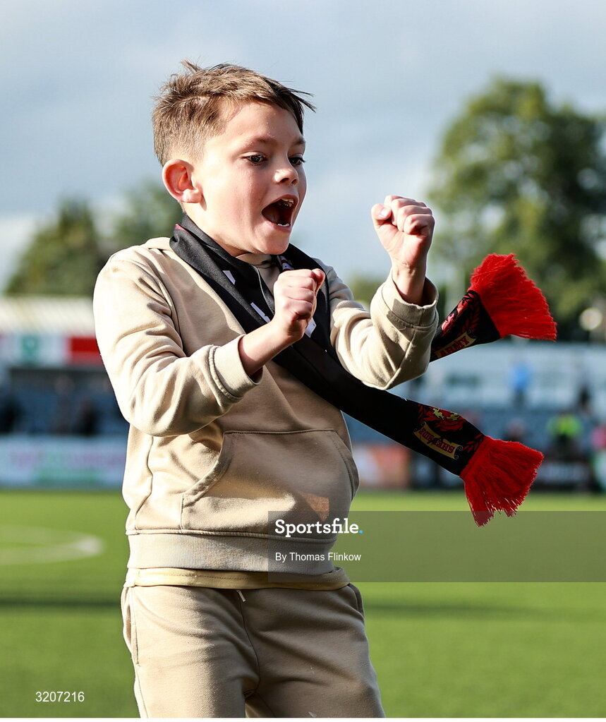 4 August 2025; Dundalk supporter Charlie O'Hegan celebrates after the SSE Airtricity Men's First Division match between Dundalk and Longford Town at Oriel Park in Dundalk, Louth. Photo by Thomas Flinkow/Sportsfile