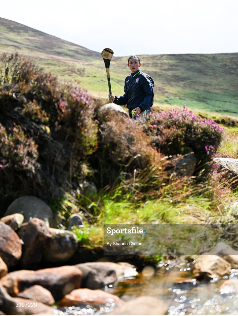 4 August 2025; Siofra Ginty of Offaly competing in the Camogie Under 16 competition during the M. Donnelly GAA Poc Fada All-Ireland Finals at Annaverna Mountain in the Cooley Peninsula, Ravensdale, Louth. Photo by Shauna Clinton/Sportsfile