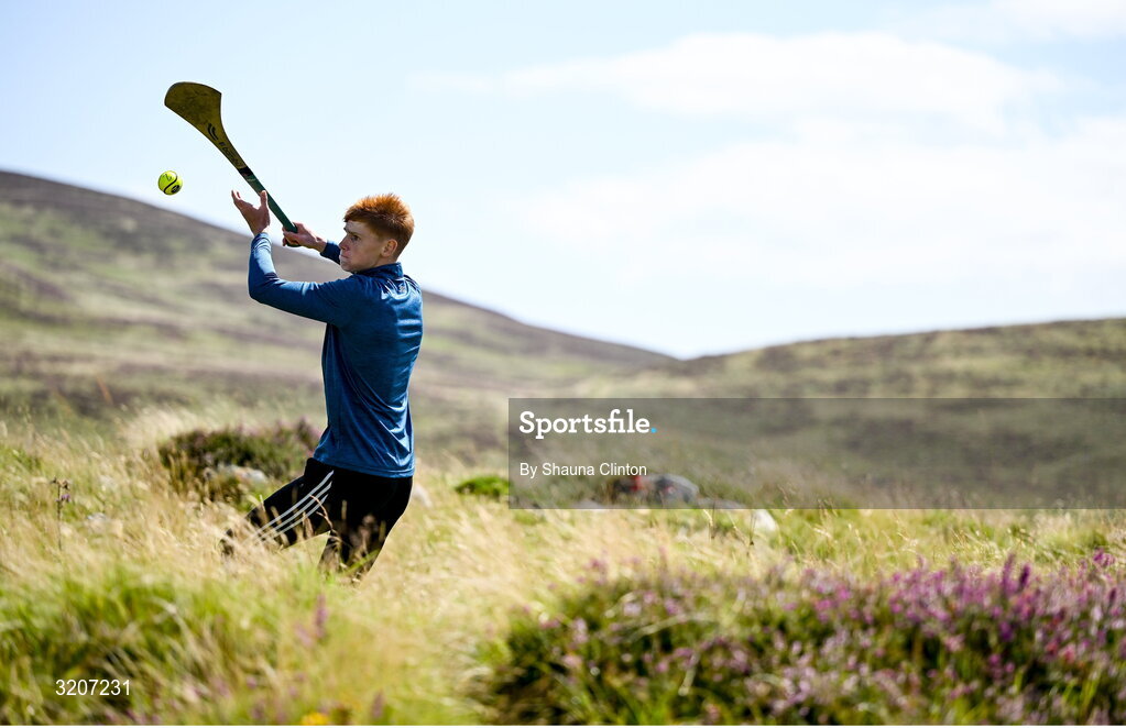 4 August 2025; Oran Stratford of Galway competing in the Hurling Under 16 competition during the M. Donnelly GAA Poc Fada All-Ireland Finals at Annaverna Mountain in the Cooley Peninsula, Ravensdale, Louth. Photo by Shauna Clinton/Sportsfile