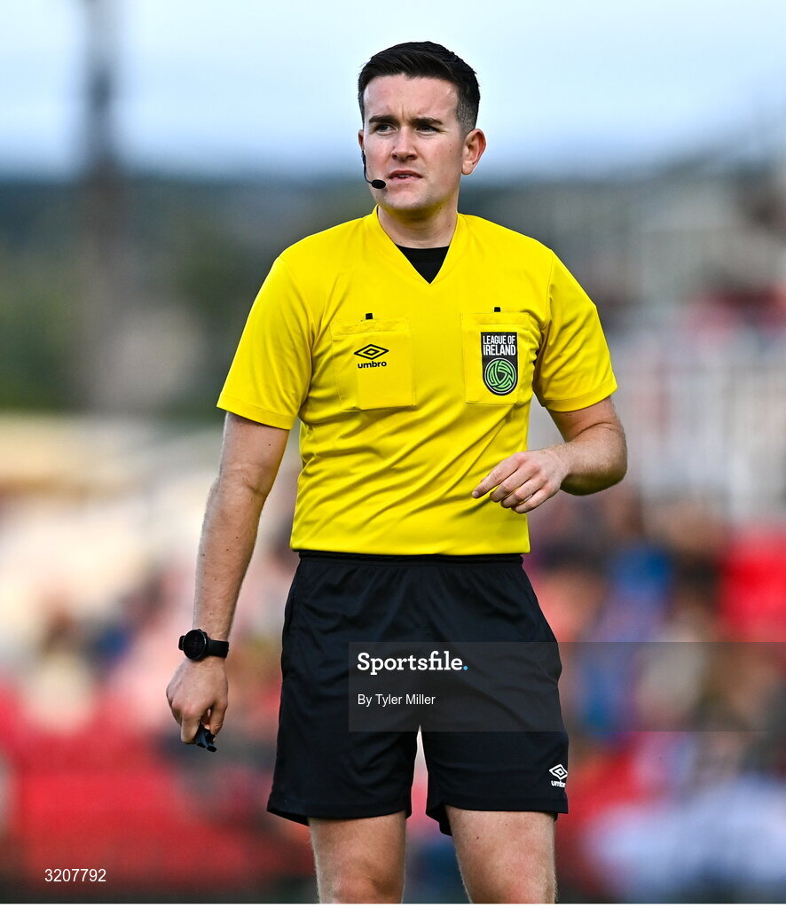 1 August 2025; Referee Paul Norton during the SSE Airtricity Men's Premier Division match between Cork City and Galway United at Turner's Cross in Cork. Photo by Tyler Miller/Sportsfile