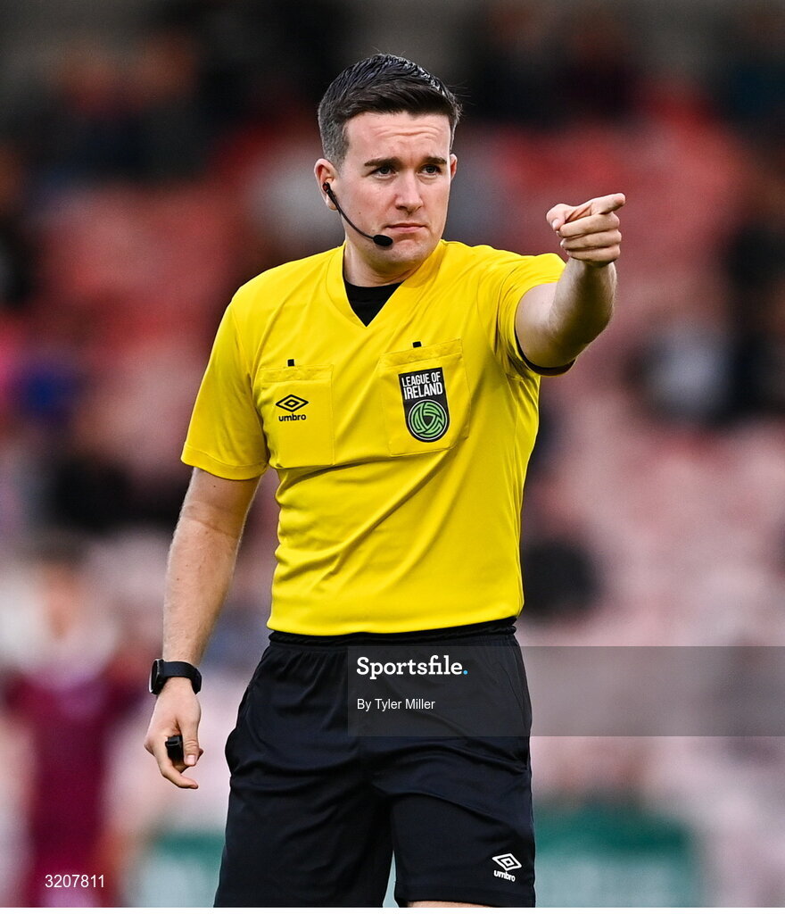 1 August 2025; Referee Paul Norton during the SSE Airtricity Men's Premier Division match between Cork City and Galway United at Turner's Cross in Cork. Photo by Tyler Miller/Sportsfile