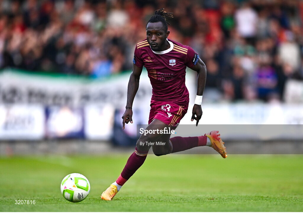 1 August 2025; Jeannot Esua of Galway United during the SSE Airtricity Men's Premier Division match between Cork City and Galway United at Turner's Cross in Cork. Photo by Tyler Miller/Sportsfile