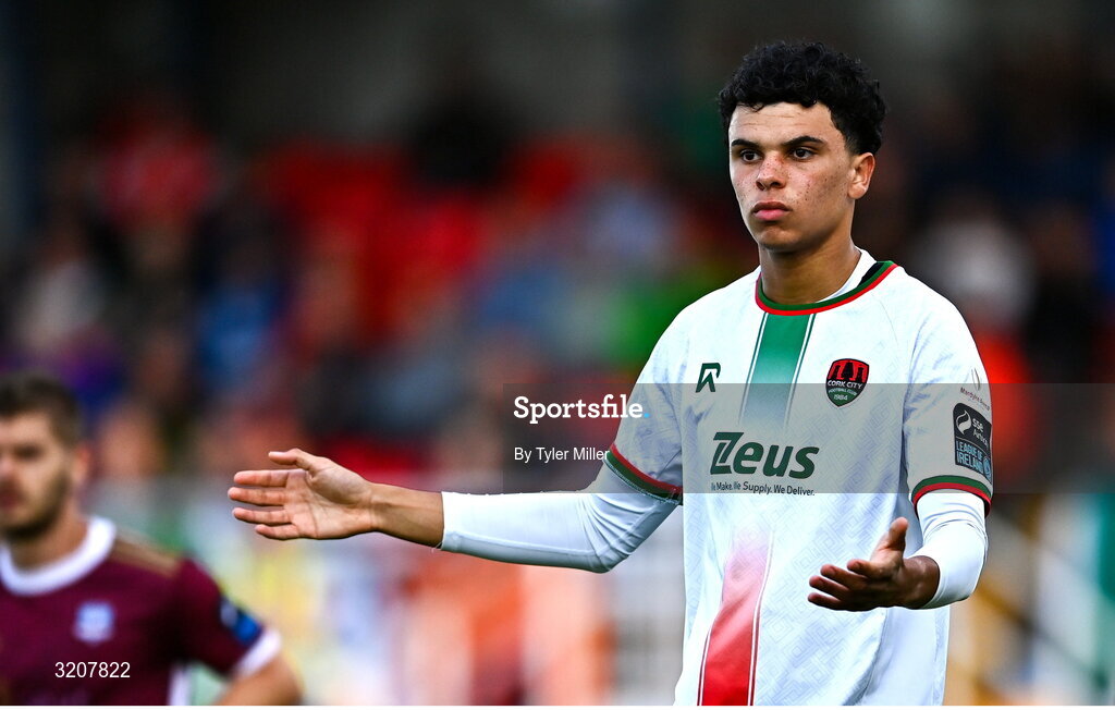 1 August 2025; Freddie Anderson of Cork City during the SSE Airtricity Men's Premier Division match between Cork City and Galway United at Turner's Cross in Cork. Photo by Tyler Miller/Sportsfile