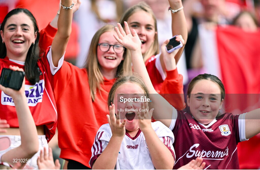 10 August 2025; Cork and Galway supporters during the Glen Dimplex All-Ireland Senior Camogie Championship final match between Cork and Galway at Croke Park in Dublin. Photo by Ramsey Cardy/Sportsfile