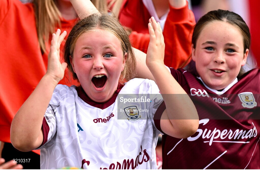 10 August 2025; Galway supporters during the Glen Dimplex All-Ireland Senior Camogie Championship final match between Cork and Galway at Croke Park in Dublin. Photo by Ramsey Cardy/Sportsfile