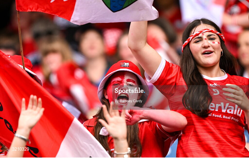 10 August 2025; Cork supporters during the Glen Dimplex All-Ireland Senior Camogie Championship final match between Cork and Galway at Croke Park in Dublin. Photo by Ramsey Cardy/Sportsfile