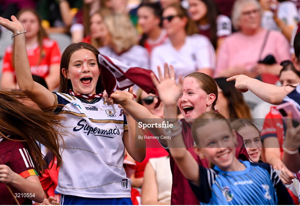 10 August 2025; Galway supporters during the Glen Dimplex All-Ireland Senior Camogie Championship final match between Cork and Galway at Croke Park in Dublin. Photo by Ramsey Cardy/Sportsfile