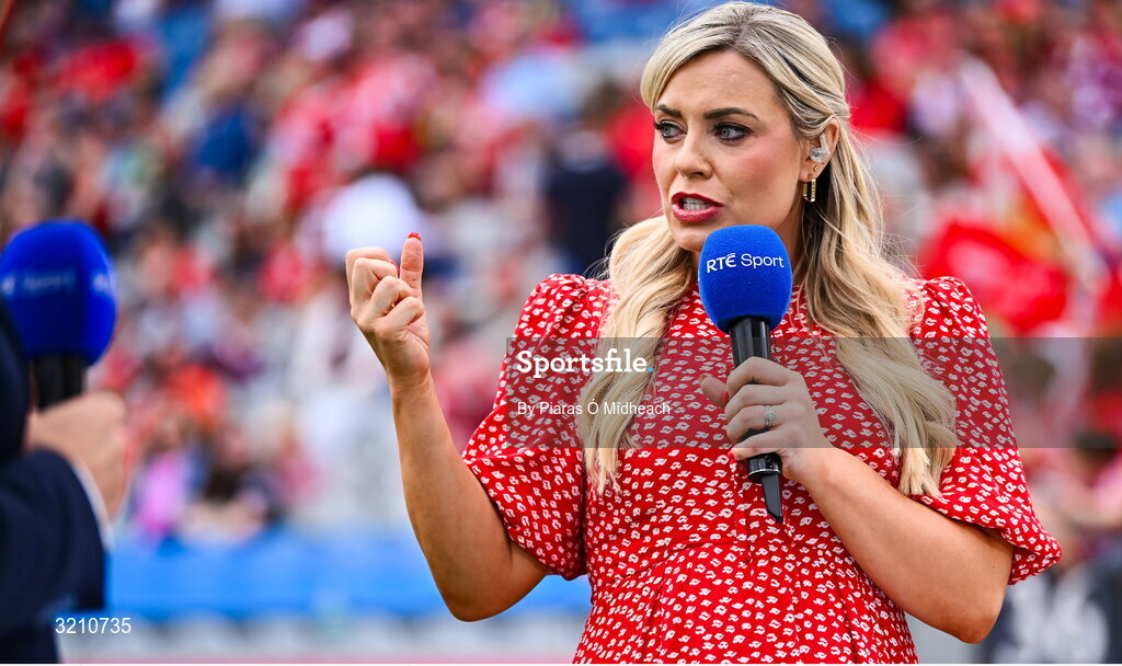 10 August 2025; RTÉ analyst Anna Geary at the Glen Dimplex All-Ireland Senior Camogie Championship final match between Cork and Galway at Croke Park in Dublin. Photo by Piaras Ó Mídheach/Sportsfile