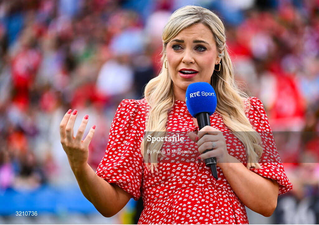 10 August 2025; RTÉ analyst Anna Geary at the Glen Dimplex All-Ireland Senior Camogie Championship final match between Cork and Galway at Croke Park in Dublin. Photo by Piaras Ó Mídheach/Sportsfile