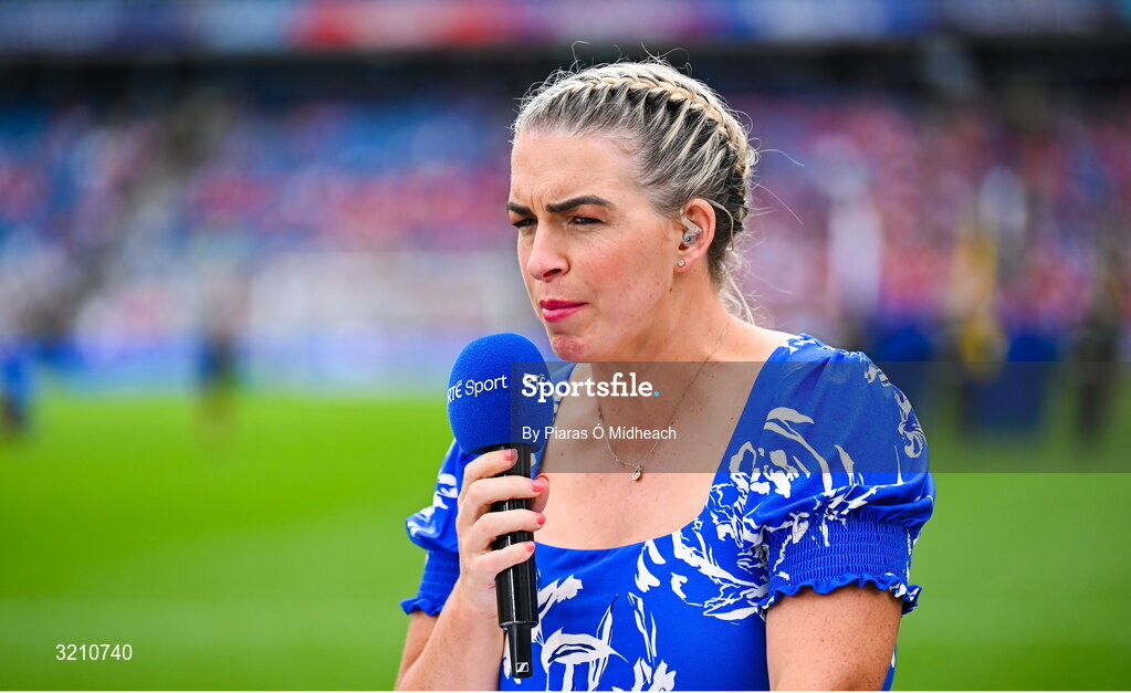 10 August 2025; RTÉ analyst Ursula Jacob at the Glen Dimplex All-Ireland Senior Camogie Championship final match between Cork and Galway at Croke Park in Dublin. Photo by Piaras Ó Mídheach/Sportsfile