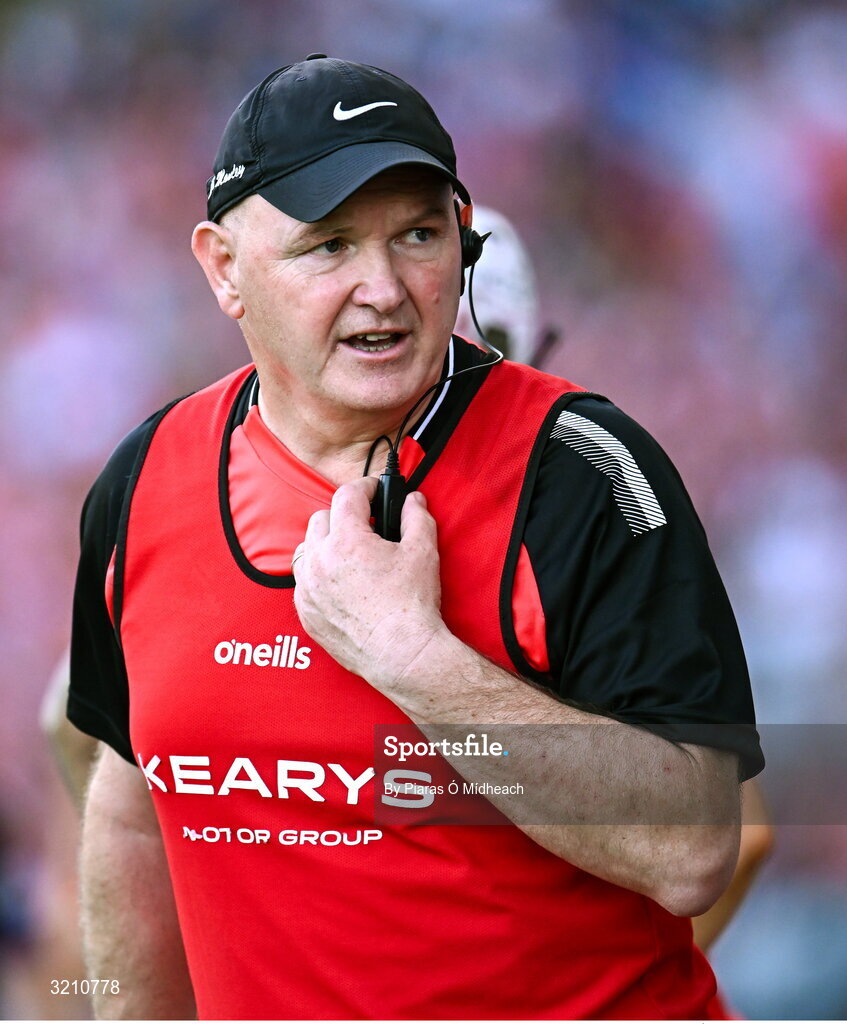 10 August 2025; Cork manager Ger Manley during the Glen Dimplex All-Ireland Senior Camogie Championship final match between Cork and Galway at Croke Park in Dublin. Photo by Piaras Ó Mídheach/Sportsfile
