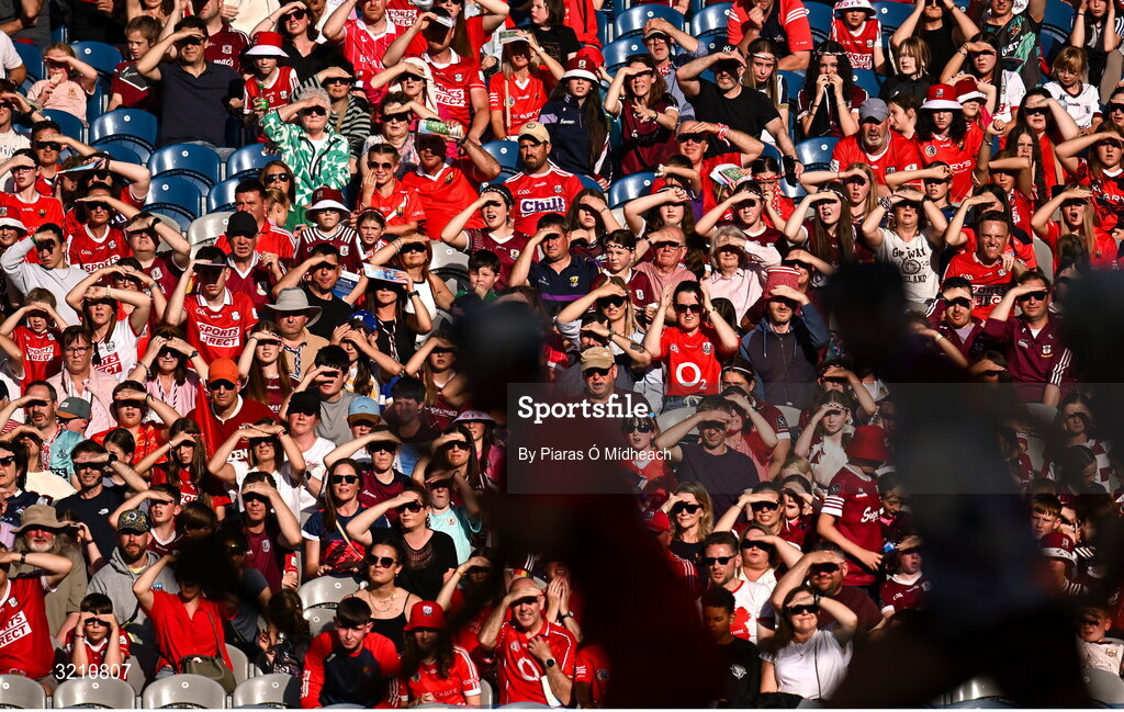 10 August 2025; Supporters during the Glen Dimplex All-Ireland Senior Camogie Championship final match between Cork and Galway at Croke Park in Dublin. Photo by Piaras Ó Mídheach/Sportsfile