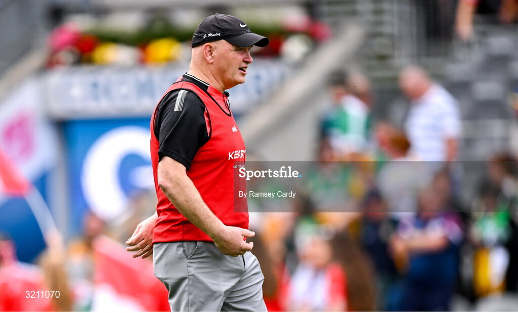 10 August 2025; Cork manager Ger Manley before the Glen Dimplex All-Ireland Senior Camogie Championship final match between Cork and Galway at Croke Park in Dublin. Photo by Ramsey Cardy/Sportsfile