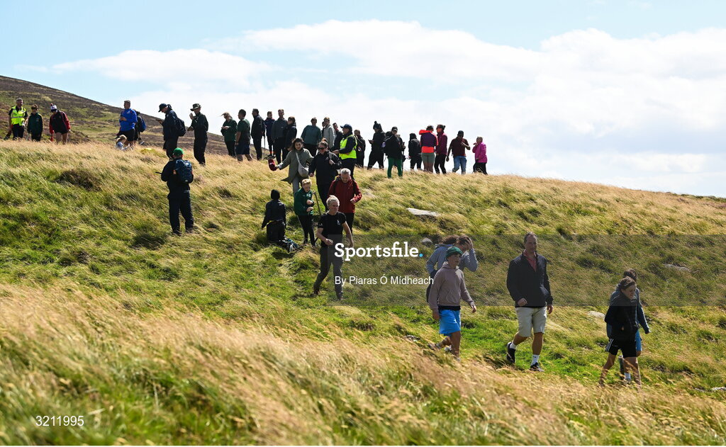 4 August 2025; Spectators during the M. Donnelly GAA Poc Fada All-Ireland Finals at Annaverna Mountain in the Cooley Peninsula, Ravensdale, Louth. Photo by Piaras Ó Mídheach/Sportsfile