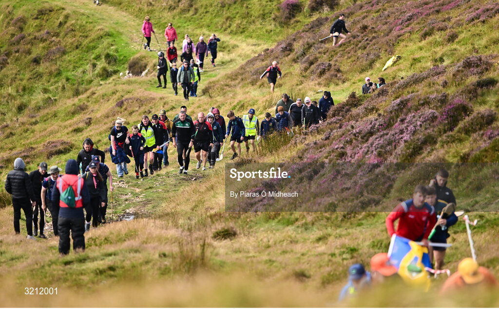 4 August 2025; Competitors, officials and spectators during the M. Donnelly GAA Poc Fada All-Ireland Finals at Annaverna Mountain in the Cooley Peninsula, Ravensdale, Louth. Photo by Piaras Ó Mídheach/Sportsfile