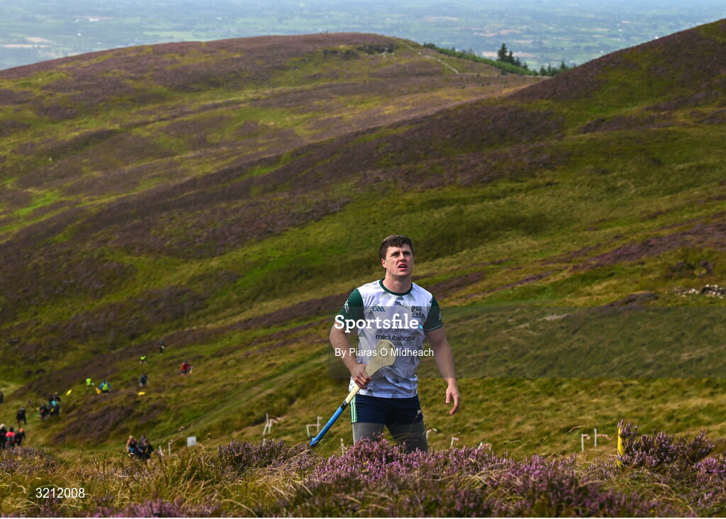 4 August 2025; Cillian Kiely of Offaly competing in the Senior Hurling competition during the M. Donnelly GAA Poc Fada All-Ireland Finals at Annaverna Mountain in the Cooley Peninsula, Ravensdale, Louth. Photo by Piaras Ó Mídheach/Sportsfile