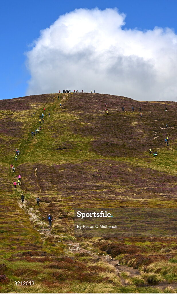 4 August 2025; Competitors, officials and spectators during the M. Donnelly GAA Poc Fada All-Ireland Finals at Annaverna Mountain in the Cooley Peninsula, Ravensdale, Louth. Photo by Piaras Ó Mídheach/Sportsfile