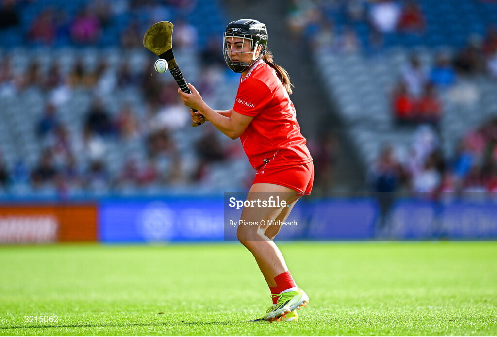 10 August 2025; Amy O’Connor of Cork during the Glen Dimplex All-Ireland Senior Camogie Championship final match between Cork and Galway at Croke Park in Dublin. Photo by Piaras Ó Mídheach/Sportsfile