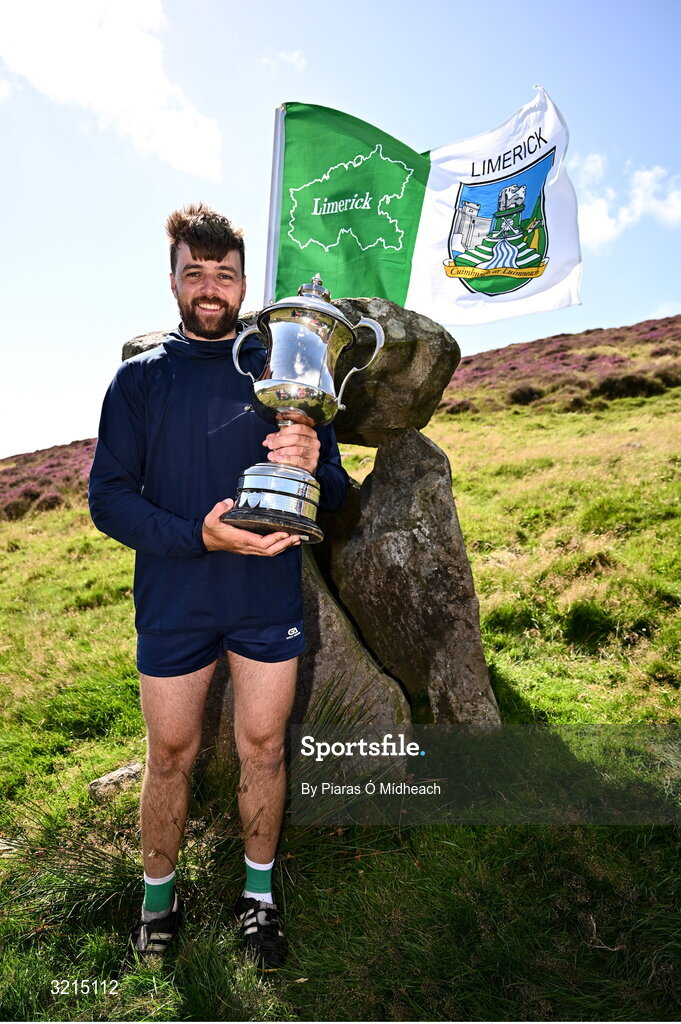 4 August 2025; Senior Hurling winner Colin Ryan of Limerick with the trophy after the M. Donnelly GAA Poc Fada All-Ireland Finals at Annaverna Mountain in the Cooley Peninsula, Ravensdale, Louth. Photo by Piaras Ó Mídheach/Sportsfile
