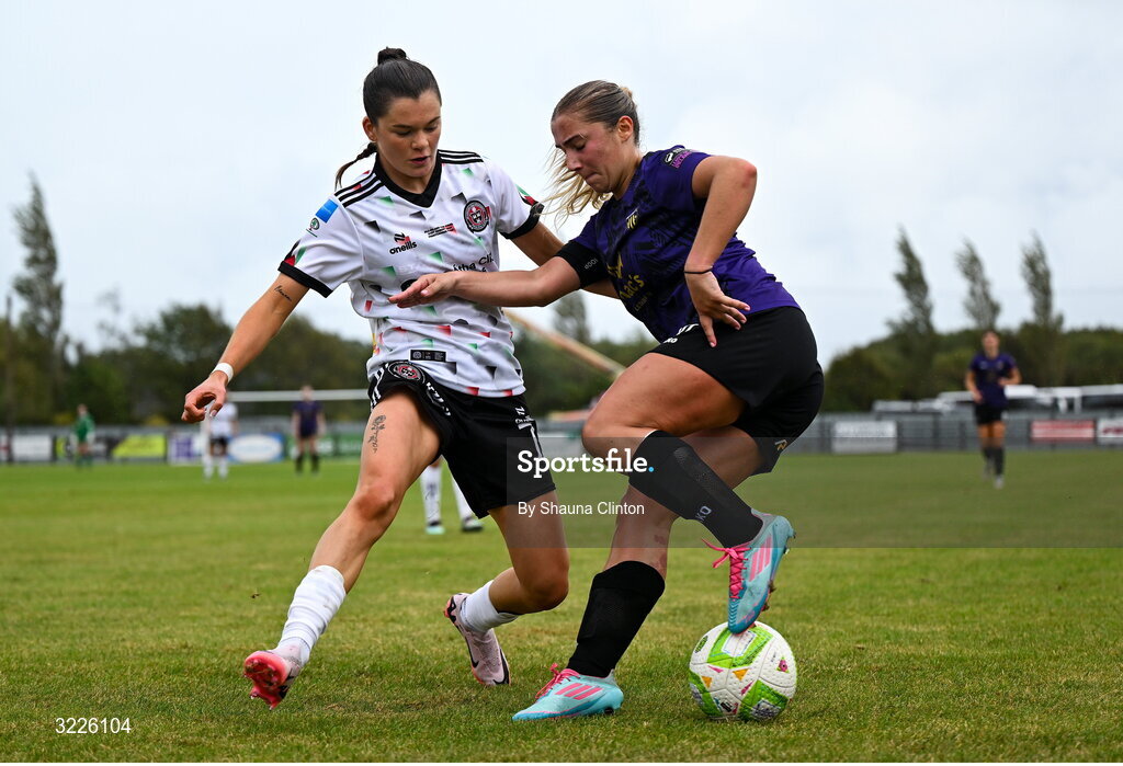 31 August 2025; Ellen Molloy of Wexford in action against Katherine Malone of Bohemians during the All-Island Cup final match between Wexford and Bohemians at Ferrycarrig Park in Wexford. Photo by Shauna Clinton/Sportsfile