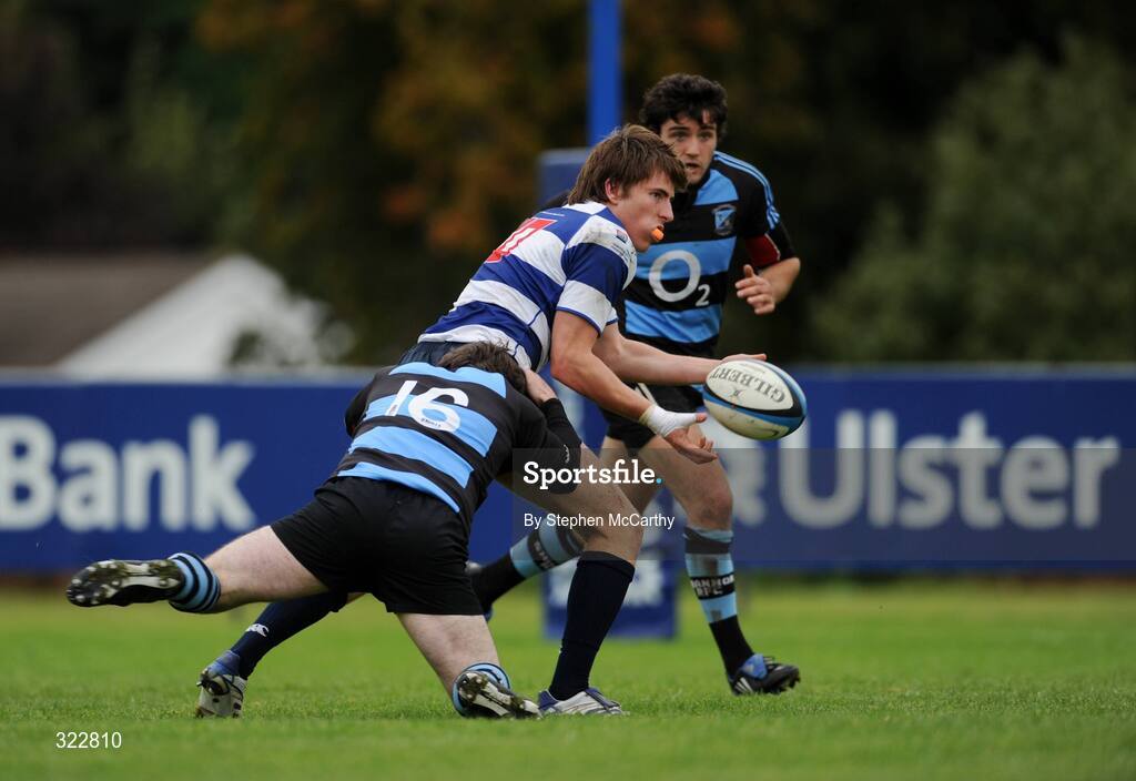 4 October 2008; Darragh Fitzpatrick, Blackrock, is tackled by Stanley Hayes, Shannon. AIB League Division 1, Blackrock v Shannon, Stradbrook Road, Blackrock, Co. Dublin. Picture credit: Stephen McCarthy / SPORTSFILE