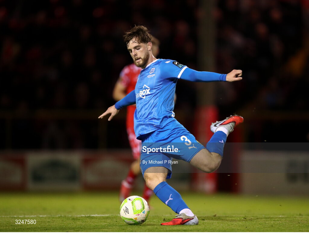 26 September 2025; Ryan Burke of Waterford during the SSE Airtricity Men's Premier Division match between Shelbourne and Waterford at Tolka Park in Dublin. Photo by Michael P Ryan/Sportsfile