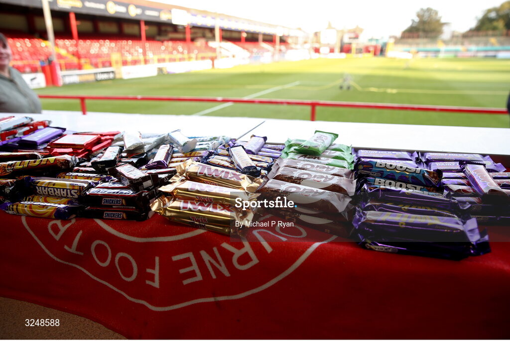 26 September 2025; A selection of chocolate bars on sale before the SSE Airtricity Men's Premier Division match between Shelbourne and Waterford at Tolka Park in Dublin. Photo by Michael P Ryan/Sportsfile