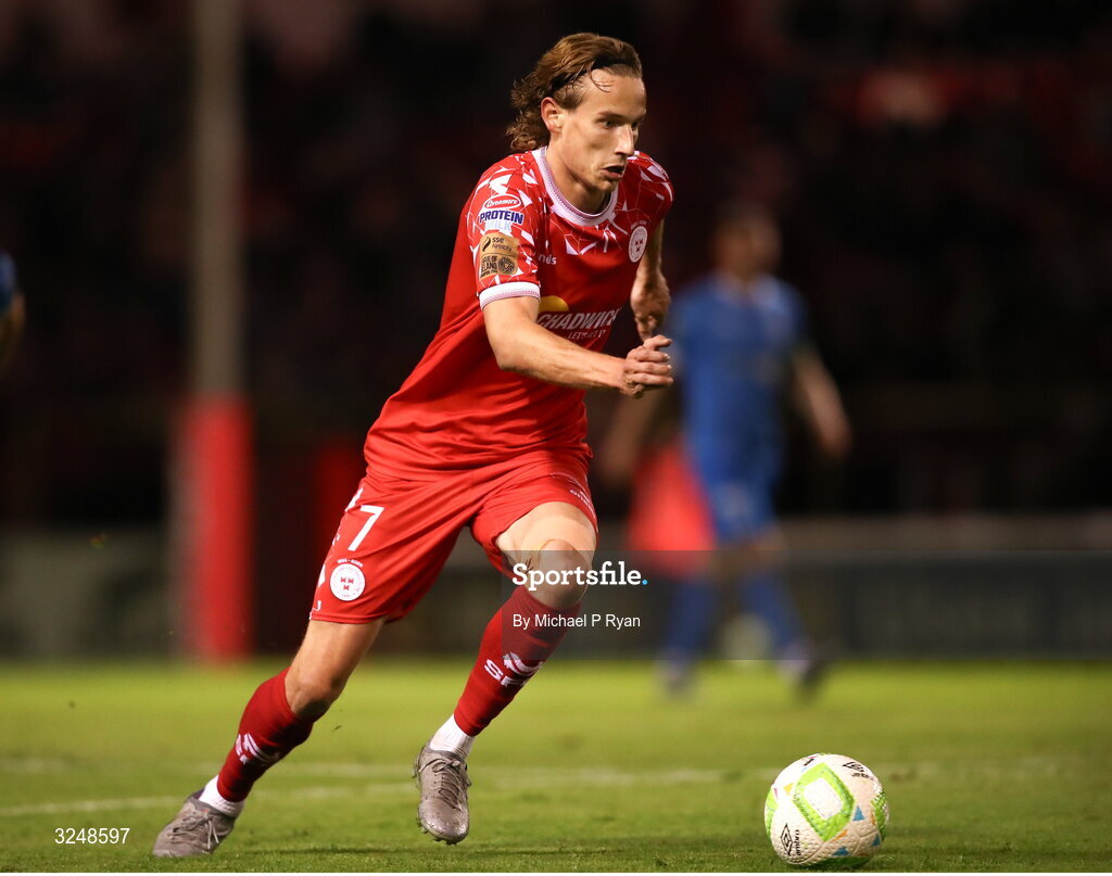 26 September 2025; Harry Wood of Shelbourne during the SSE Airtricity Men's Premier Division match between Shelbourne and Waterford at Tolka Park in Dublin. Photo by Michael P Ryan/Sportsfile
