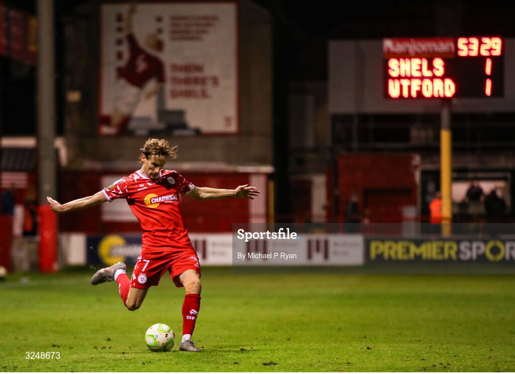 26 September 2025; Harry Wood of Shelbourne during the SSE Airtricity Men's Premier Division match between Shelbourne and Waterford at Tolka Park in Dublin. Photo by Michael P Ryan/Sportsfile