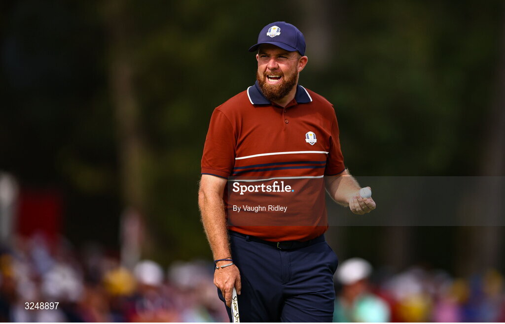 27 September 2025; Shane Lowry of Europe putts on the ninth green during the afternoon fourballs on day two of the 2025 Ryder Cup at Black Course at Bethpage State Park Golf Course in Farmingdale, New York, USA. Photo by Vaughn Ridley/Sportsfile