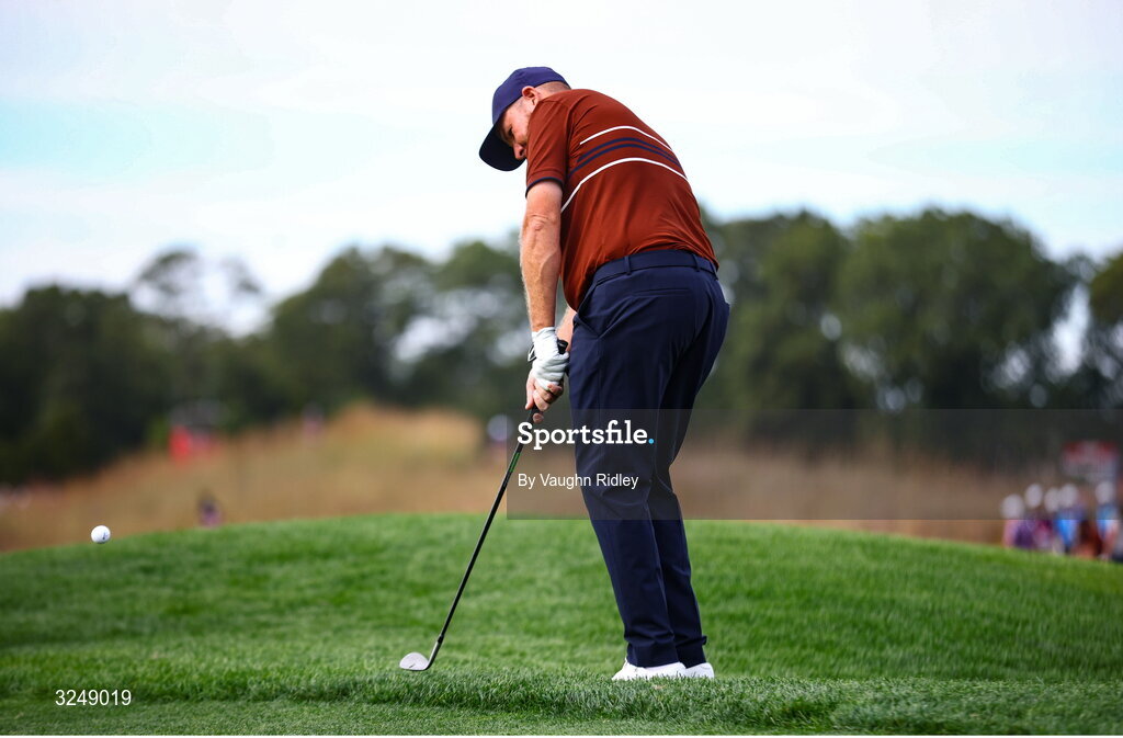 27 September 2025; Shane Lowry of Europe chips onto the 11th green during the afternoon fourballs on day two of the 2025 Ryder Cup at Black Course at Bethpage State Park Golf Course in Farmingdale, New York, USA. Photo by Vaughn Ridley/Sportsfile