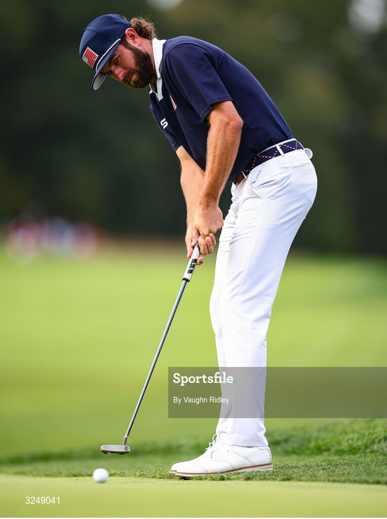 27 September 2025; Cameron Young of USA putts on the 11th green during the afternoon fourballs on day two of the 2025 Ryder Cup at Black Course at Bethpage State Park Golf Course in Farmingdale, New York, USA. Photo by Vaughn Ridley/Sportsfile