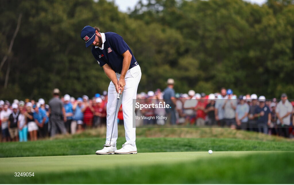 27 September 2025; Cameron Young of USA putts on the 12th green during the afternoon fourballs on day two of the 2025 Ryder Cup at Black Course at Bethpage State Park Golf Course in Farmingdale, New York, USA. Photo by Vaughn Ridley/Sportsfile