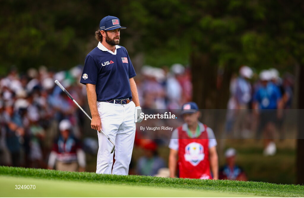 27 September 2025; Cameron Young of USA looks on at the 13th green during the afternoon fourballs on day two of the 2025 Ryder Cup at Black Course at Bethpage State Park Golf Course in Farmingdale, New York, USA. Photo by Vaughn Ridley/Sportsfile