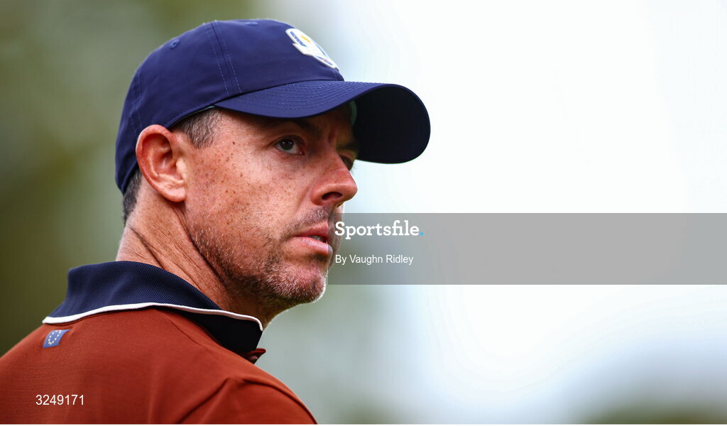27 September 2025; Rory McIlroy of Europe during the afternoon fourballs on day two of the 2025 Ryder Cup at Black Course at Bethpage State Park Golf Course in Farmingdale, New York, USA. Photo by Vaughn Ridley/Sportsfile