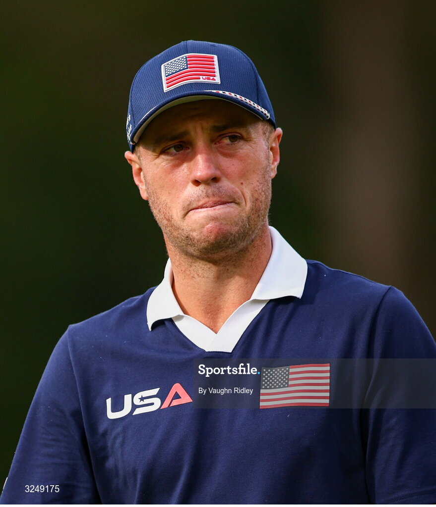 27 September 2025; Justin Thomas of USA during the afternoon fourballs on day two of the 2025 Ryder Cup at Black Course at Bethpage State Park Golf Course in Farmingdale, New York, USA. Photo by Vaughn Ridley/Sportsfile
