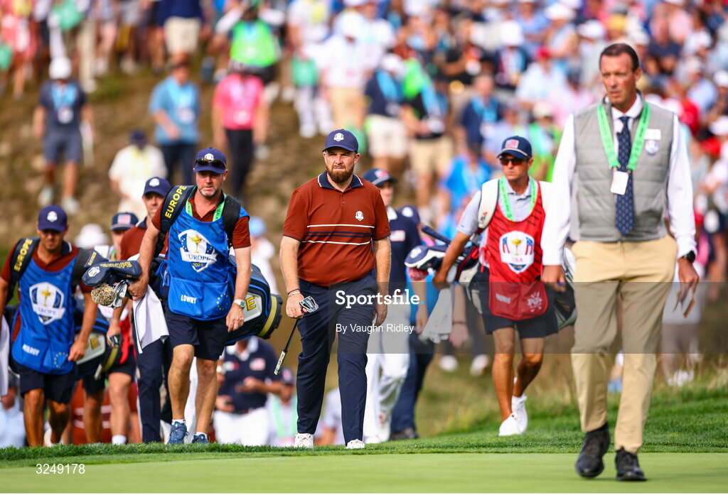 27 September 2025; Shane Lowry of Europe during the afternoon fourballs on day two of the 2025 Ryder Cup at Black Course at Bethpage State Park Golf Course in Farmingdale, New York, USA. Photo by Vaughn Ridley/Sportsfile