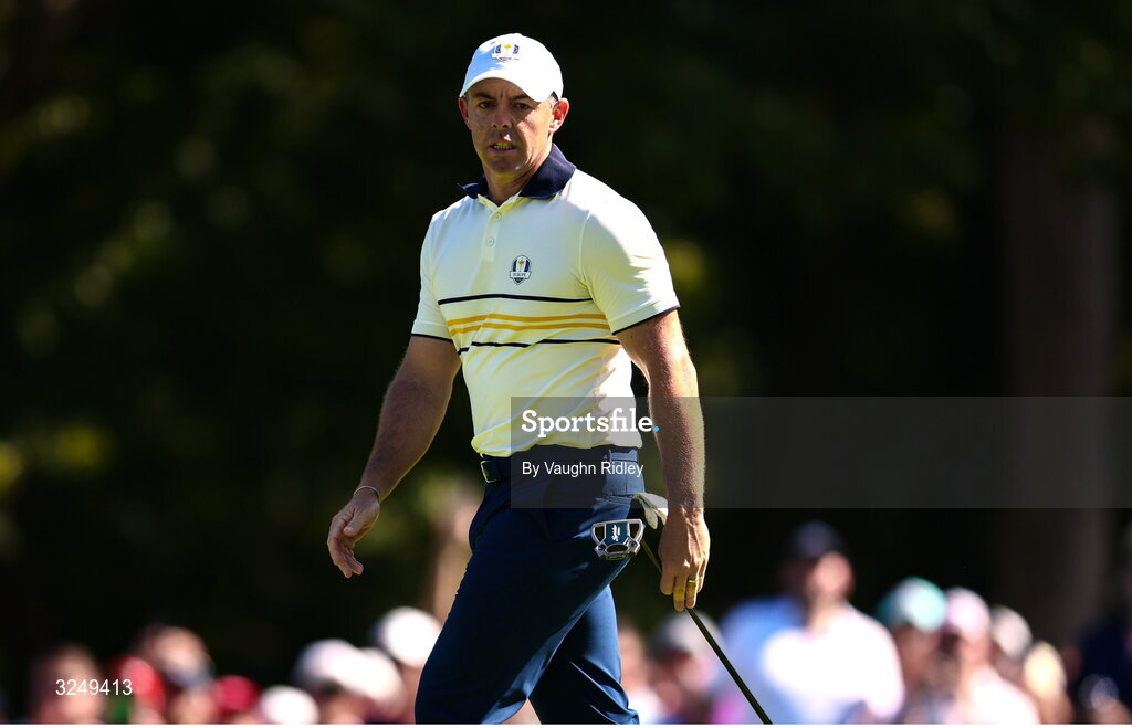 28 September 2025; Rory McIlroy of Europe on the third green during the singles matches on day three of the 2025 Ryder Cup at Black Course at Bethpage State Park Golf Course in Farmingdale, New York, USA. Photo by Vaughn Ridley/Sportsfile