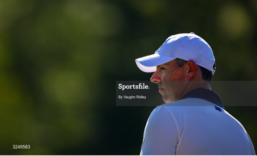 28 September 2025; Rory McIlroy of Europe waits on the 13th tee box during the singles matches on day three of the 2025 Ryder Cup at Black Course at Bethpage State Park Golf Course in Farmingdale, New York, USA. Photo by Vaughn Ridley/Sportsfile