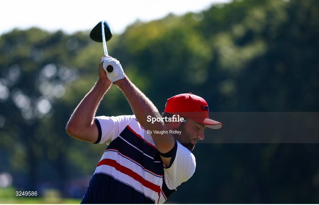 28 September 2025; Scottie Scheffler of USA plays his tee shot on the 13th hole during the singles matches on day three of the 2025 Ryder Cup at Black Course at Bethpage State Park Golf Course in Farmingdale, New York, USA. Photo by Vaughn Ridley/Sportsfile