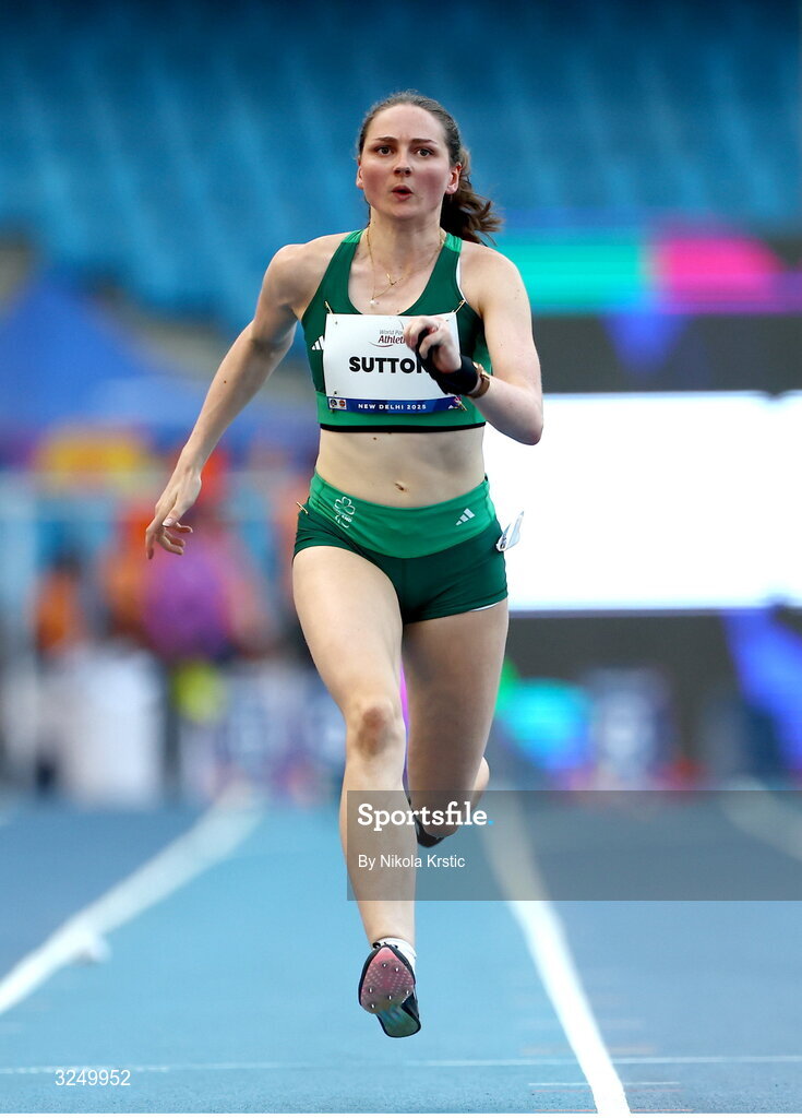 29 September 2025; Lana Sutton of team Ireland competes in the Women's 100m T38 final during day four of the New Delhi 2025 World Para Athletics Championships at JLN Stadium in New Delhi, India. Photo by Nikola Krstic/Sportsfile
