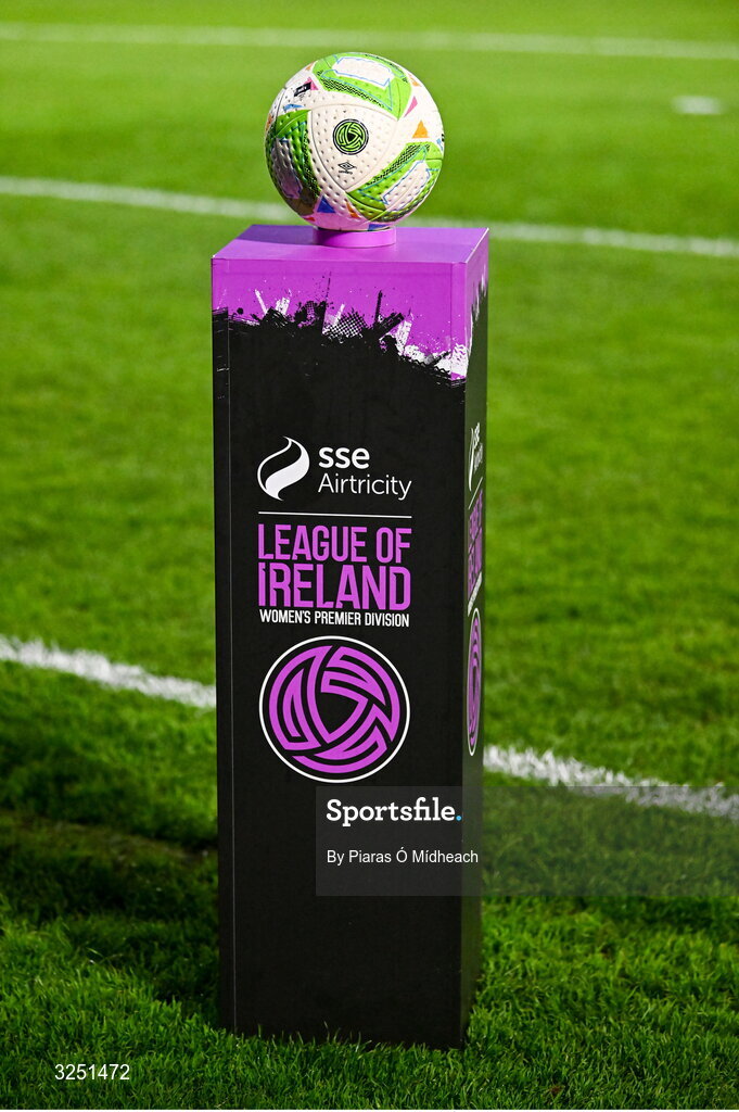 1 October 2025; The matchball on a plinth before the SSE Airtricity Women's Premier Division match between Cork City and Athlone Town at Turner's Cross in Cork. Photo by Piaras Ó Mídheach/Sportsfile