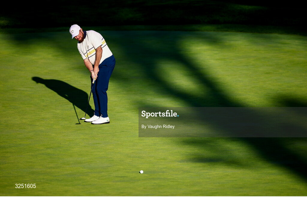 28 September 2025; Shane Lowry of Europe putts during the singles matches on day three of the 2025 Ryder Cup at Black Course at Bethpage State Park Golf Course in Farmingdale, New York, USA. Photo by Vaughn Ridley/Sportsfile